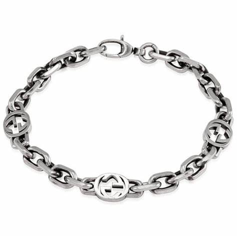 Description du produit : Le bracelet Gucci Interlocking G Sterling Silver Chain Bracelet témoigne du riche héritage de la marque et de son savoir-faire exquis. Fabriqué en argent sterling 925 avec une finition vieillie, ce bracelet présente une série de motifs G entrelacés, rendant hommage aux initiales du fondateur de la Maison, Guccio Gucci. Le design robuste de la chaîne est à la fois intemporel et polyvalent, ce qui le rend adapté à de nombreuses occasions.