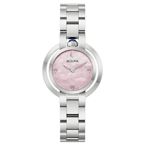 Montre femme Bulova 96L338 - acier argenté, cadran MOP rose, glace saphir