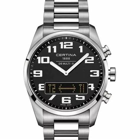 Montre homme Certina DS Multi-8, cadran noir, bracelet en acier inoxydable