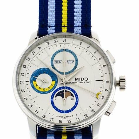 Mido Baroncelli Chronograph Moonphase M027.625.17.031.00 Montre Homme Automatique - Cadran argenté, bracelet cuir bleu