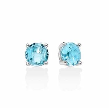 - Pierre précieuse : Chaque boucle d'oreille est ornée d'une topaze bleue naturelle, taillée dans une forme ronde classique.