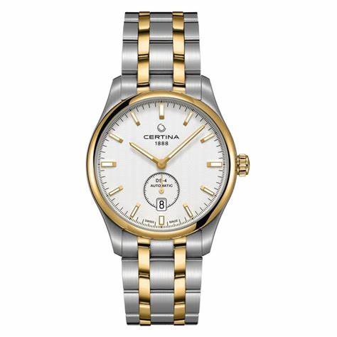 Certina DS-4 Small Second Automatic C022.428.22.031.00 Orologio da uomo, quadrante argentato, bracciale bicolore