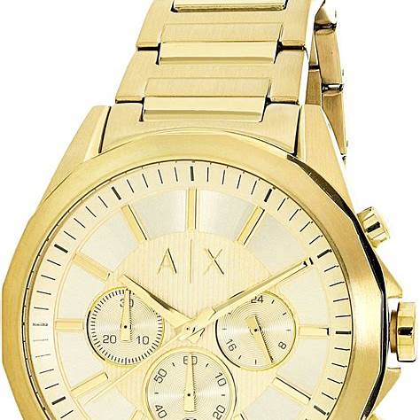 Product Description: The Armani Exchange AX2602 is a sophisticated men's chronograph watch that seamlessly blends modern design with practical functionality. Its luxurious gold-tone stainless steel construction and textured dial make it a versatile accessory suitable for both casual and formal occasions.