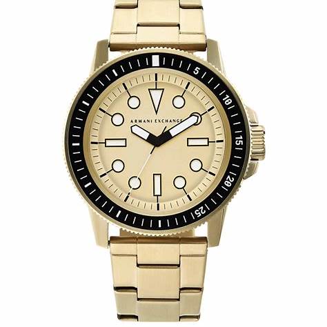 WR: 5 ATM - Case: 44 mm - Gender: Men - Case Material: SS IP Gold - Strap Material: SS IP Gold - Movement: Quartz - Functions: Only Time - Glass: Mineral - Product Type: Wristwatch - Packaging: Official Box A|x Armani Exchange Watches Mod. Ax1854