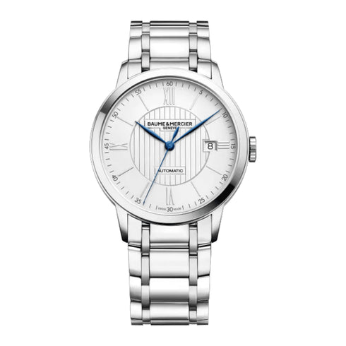 Baume & Mercier Classima MOA10215 Men's Automatic Watch - 40mm Stainless Steel Case, Silver Guilloché Dial, Date Display, Stainless Steel Bracelet