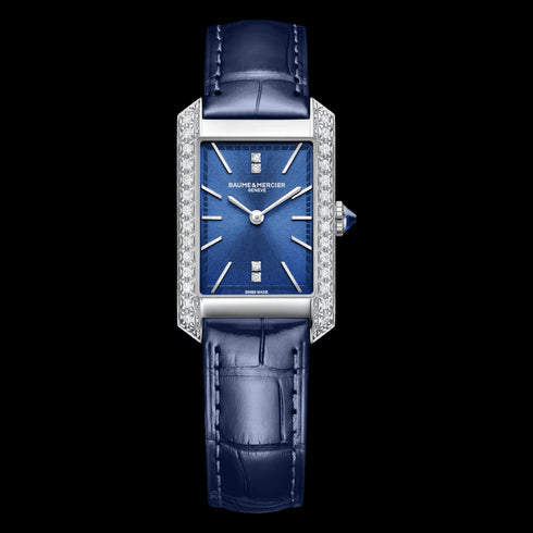 Baume & Mercier Hampton MOA10709 Women's Quartz Watch - 35mm Stainless Steel Case, Blue Dial, Diamond-Set Bezel, Blue Alligator Strap