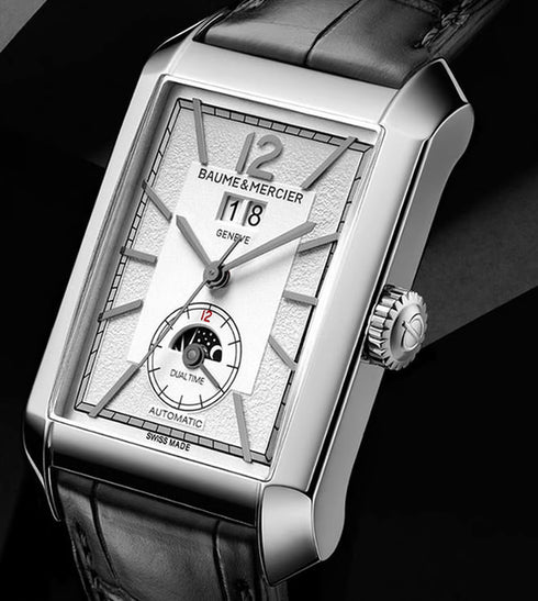 Introducing the Baume & Mercier Hampton MOA10523, a men's automatic watch that epitomizes refined elegance and Swiss craftsmanship. This timepiece seamlessly blends classic Art Deco design with contemporary aesthetics, making it a versatile accessory for any occasion.