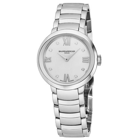Baume & Mercier Promesse MOA10158 Women's Quartz Watch - 30mm Stainless Steel Case, Mother-of-Pearl Dial with Diamond Markers, Stainless Steel Bracelet