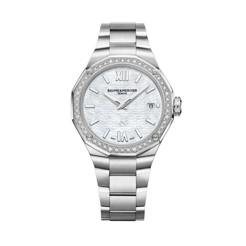 Baume & Mercier Riviera MOA10662 Women's Quartz Watch - 36mm Stainless Steel Case, White Mother-of-Pearl Dial, Diamond-Set Bezel, Steel Bracelet