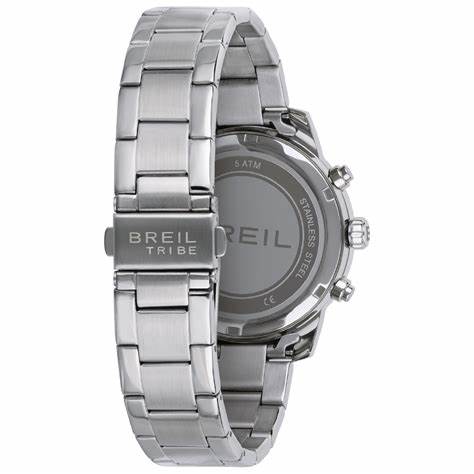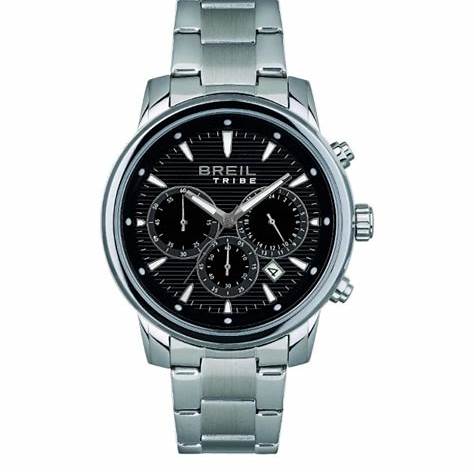 Product Description: The Breil Caliber EW0510 is a men's chronograph watch that combines a sleek stainless steel design with a detailed black dial. The dial features a striped pattern, providing a sophisticated backdrop for the silver-tone indices and hands, which are treated with luminous material for enhanced readability. The watch includes chronograph functions and a date display, offering both style and functionality.