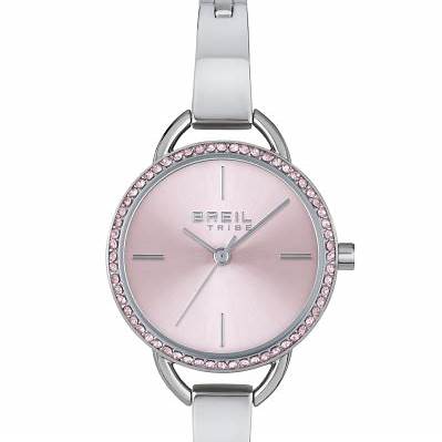 Breil Caroline EW0558 Women's Quartz Watch - 29mm Pink Sunray Dial with Crystal-Set Bezel, Stainless Steel Bracelet