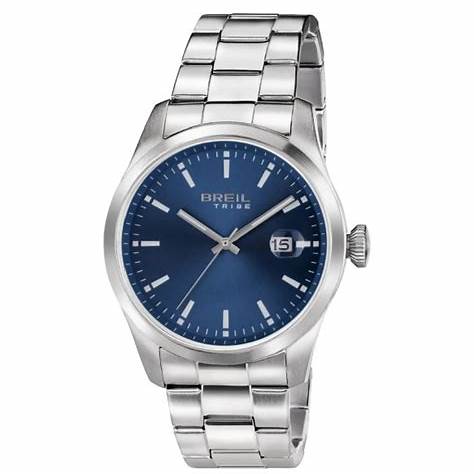 Gender: Men - Case: 42 mm - WR: 5 ATM - Movement: Quartz Analog - Glass: Mineral - Functions: Calendar - Packaging: Official Box - Material: Silver 925° Product Description: The Breil Classic Elegance EW0596 is a men's time-only watch that embodies timeless sophistication with modern design elements. Crafted with a polished stainless steel case and bracelet, this timepiece features a striking blue sunray-effect dial complemented by white hour markers, ensuring immediate readability. Its classic yet contemporary aesthetic makes it a versatile accessory suitable for any occasion