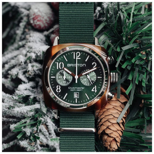 Briston Clubmaster Classic Chronograph 40mm Rose Gold Green Dial Green NATO Strap 19140.PRA.T.26.NOL
