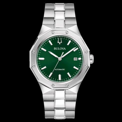 Bulova 96B464 Men's Automatic Watch – Green Dial, 40mm Steel Case, 100m WR