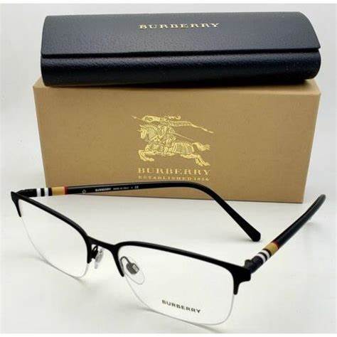 Burberry BE 1323 1213 54 Men's Eyeglasses - Black Rubber Semi-Rimless Rectangle Fram