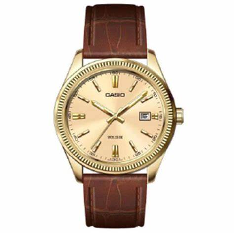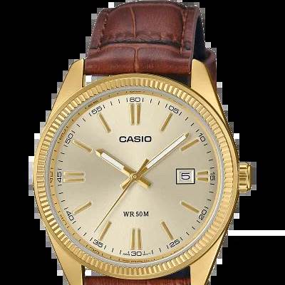 Casio MTP-1302PGL-9AVEF Men's Analog Watch – Gold Dial with Genuine Leather Strap