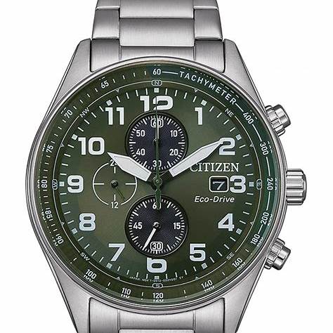 Citizen CA0770-72X Men's Eco-Drive Chronograph Watch, Green Dial, Stainless Steel Bracelet