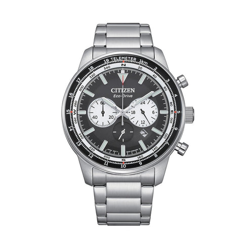 Citizen CA4500-91E Eco-Drive Chronograph Men's Watch - Black Dial, Stainless Steel Bracelet