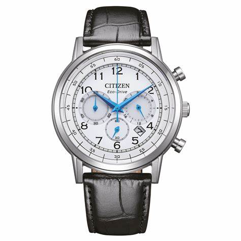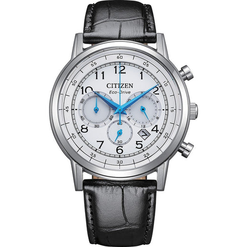 Citizen CA4630-02A Chronograph White Dial Black Leather Strap