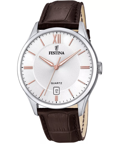 Festina F20426/4 Classic Men's Watch – Silver Dial, Brown Leather Strap