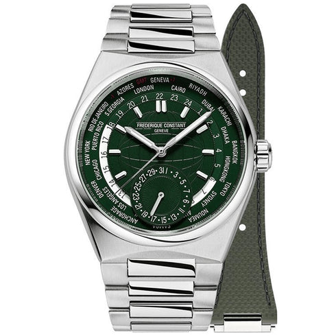 Frederique Constant Highlife Worldtimer Manufacture FC-718GR4NH6B-IT Men's Watch - Green Dial, Stainless Steel Case and Bracele