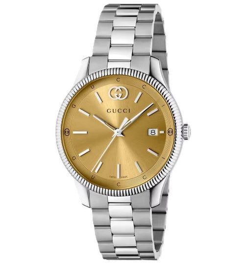 Gucci G-Timeless 38mm YA1264234 Men's Watch – Gold-Plated Dial, Stainless Steel Bracelet