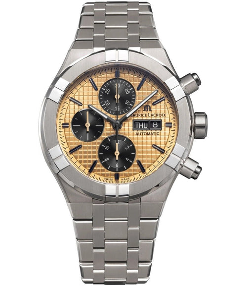 Maurice Lacroix AIKON Automatic Chronograph Titanium Men's Watch AI6038-TT032-530-1 - Gold Dial, Black Subdials, Titanium Case & Bracelet