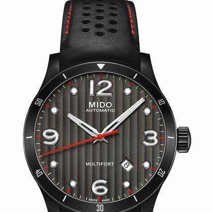 WR: 5 ATM - Case: 42 mm - Gender: Men - Case Material: SS IP Black - Strap Material: Leather Strap - Functions: Data - Glass: Sapphire - Product Type: Wristwatch - Made in: Switzerland - Packaging: Official Box Product Description: The Mido Multifort M0254073606100 is a distinguished timepiece that seamlessly blends traditional Swiss craftsmanship with modern watchmaking technology. Encased in a 42mm stainless steel case with black PVD coating, this watch features a striking anthracite dial adorned with luminous silver-tone hands and dot hour markers. Arabic numerals mark the 3, 6, 9, and 12 o'clock positions, enhancing its refined aesthetic. The dial is protected by a scratch-resistant sapphire crystal, ensuring durability and clarity. Powered by the Mido Caliber Powermatic 80 (ETA C07.611) automatic movement, it offers an impressive 80-hour power reserve. The watch is water-resistant up to 100 meters, making it suitable for daily wear and light swimming. A black perforated leather strap with a deployment clasp complements the overall design, providing both comfort and style. The transparent case back allows for a view of the intricate movement