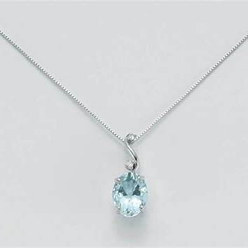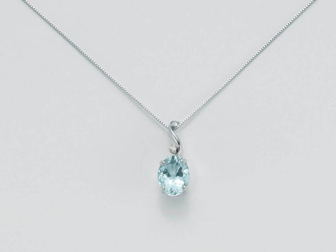 Miluna CLD3011 Women's Aquamarine Pendant Necklace in 18K White Gold