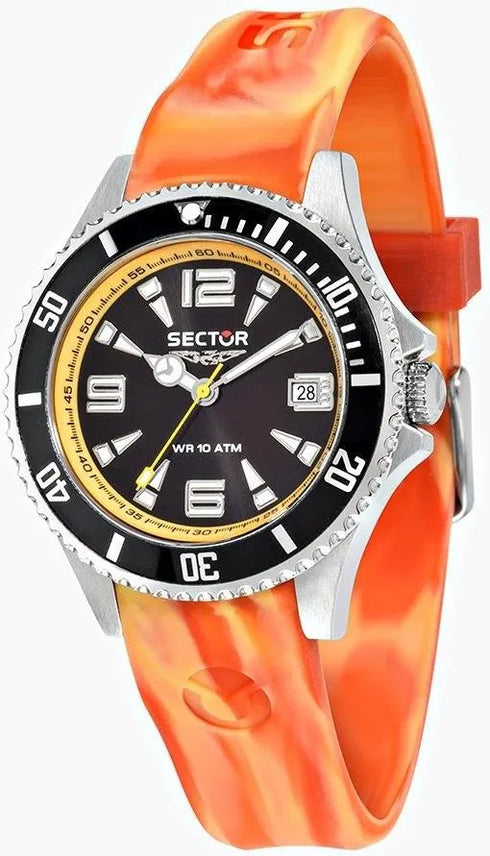 Sector No Limits 230 R3251161022 Men's Quartz Watch - 46mm Black Dial, Orange Silicone Strap