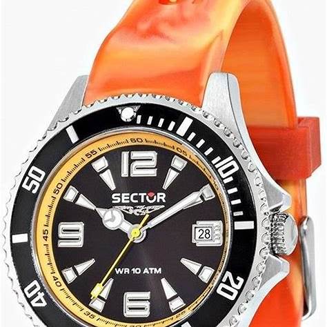Product Description: The Sector No Limits 230 R3251161022 is a men's quartz watch that combines sporty design with reliable functionality. Featuring a robust 46mm stainless steel case, this timepiece is both durable and stylish. The black dial is complemented by luminous hands and hour markers, ensuring clear readability in various lighting conditions. The vibrant orange silicone strap adds a bold touch, making it a standout accessory for any casual or athletic ensemble. With water resistance up to 100 meters (10 ATM), this watch is suitable for swimming and snorkeling.