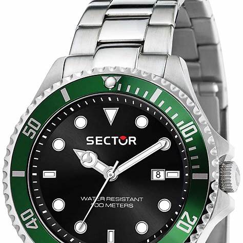 Sector 230 R3253161041 Men's Watch - Stainless Steel, Black Dial, Green Bezel