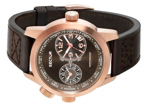 Sector Oversize R3251102022 Men's Quartz Chronograph Watch - 48mm Brown Dial, Brown Leather Strap