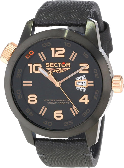 Sector Oversize R3251202025 Men's Quartz Watch - 48mm Black Dial, Black Leather Strap