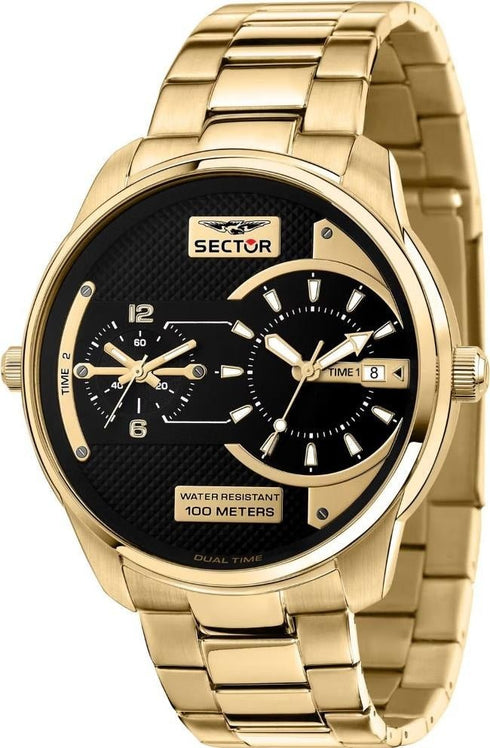 Sector R3253102026 Oversize Dual Time – Gold Steel, 48mm, 10 ATM