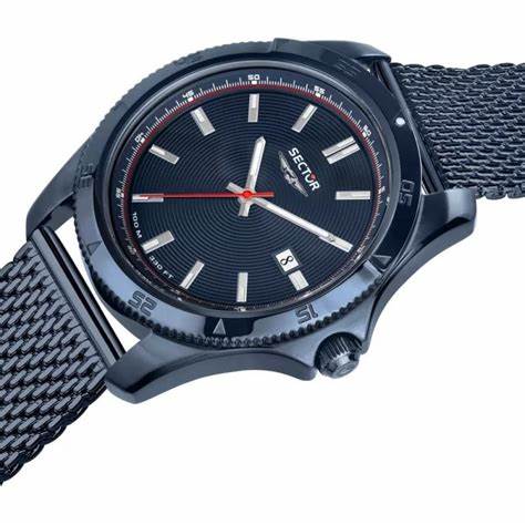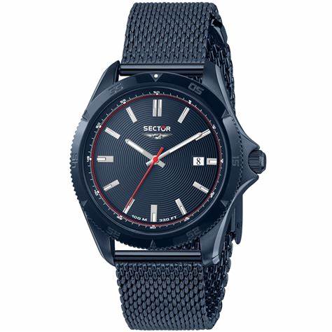Product Description: Introducing the Sector 650 R3253231004, a men's quartz watch that combines sporty design with reliable functionality. This timepiece features a 43mm blue stainless steel case, offering durability and a sleek appearance. The blue dial is complemented by silver-tone hands and hour markers, ensuring clear readability. A date display adds to its practicality, while the blue stainless steel mesh bracelet provides a comfortable and stylish fit, suitable for both casual and formal occasions. With water resistance up to 100 meters (10 ATM), this watch is suitable for swimming and snorkeling.