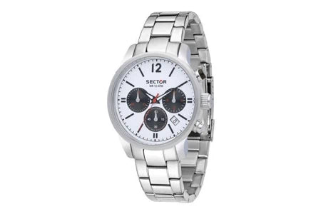 Sector 640 R3273693003 Men's Chronograph Quartz Watch - 42mm White Dial, Stainless Steel Bracelet