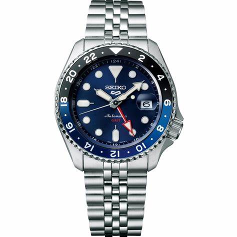 Seiko 5 Sports SSK003K1 Automatic GMT Men's Watch - Blue Dial, Steel Bracelet
