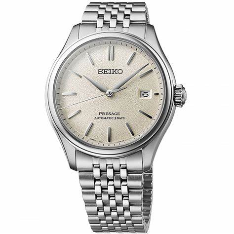 Product Description: The Seiko Presage SPB463J1 is a refined men's automatic watch that embodies Seiko's dedication to precision and timeless design. Part of the Presage Classic Series, this timepiece features a textured silver dial, offering a sophisticated aesthetic suitable for any occasion.