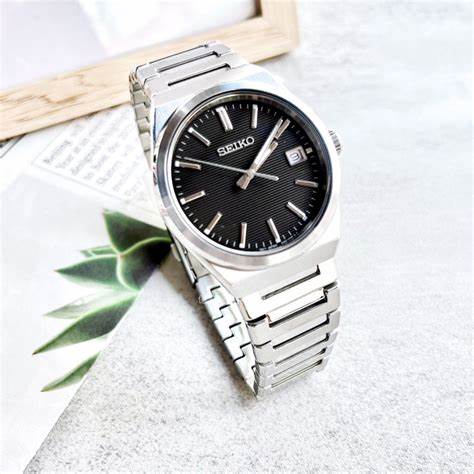 Product Description: The Seiko Classic SUR557P1 is a refined timepiece that seamlessly blends traditional design with modern functionality. Featuring a black pressed-pattern dial and a durable stainless steel bracelet, this watch exudes elegance suitable for both formal and casual occasions.