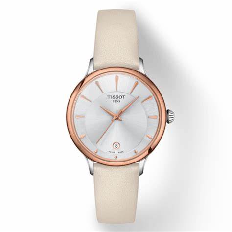 Tissot Odaci-T Women's Watch - Silver Dial, Rose Gold PVD Bezel, Cream Leather Strap