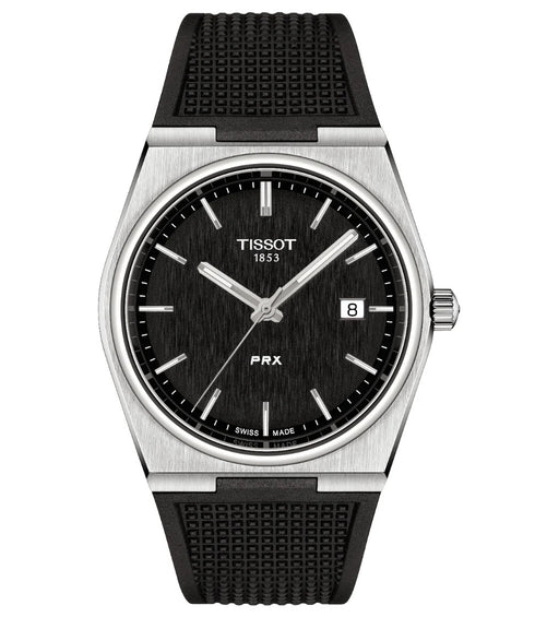 Tissot PRX Quartz 40mm Men's Watch T137.410.17.051.00 – Black Dial, Stainless Steel Case, Rubber Strap, Date Display